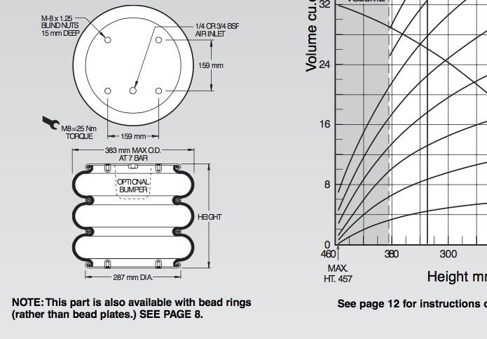 | ความสูงขั้นต่ำที่ใช้งานได้ (มม.) | 381 | ความถี่ธรรมชาติ (@ 5 บาร์) (fn (Hz) | 1.4 |