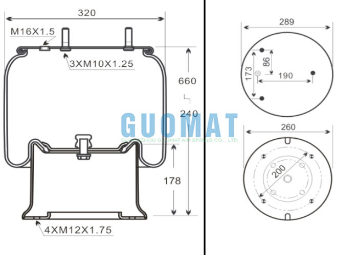 GUOMAT รุ่น 1T6334 ลายอากาศแขวนรถบรรทุกเป็นการแทนที่ที่มีประสิทธิภาพสูง, เหมาะสมอย่างสมบูรณ์แบบกับรุ่นที่เท่าเทียมกันของแบรนด์ดังต่อไปนี้: Firestone: W01-M58-6334; Contitech:81M16K1; กู๊ดไอร์: 1R14-719.